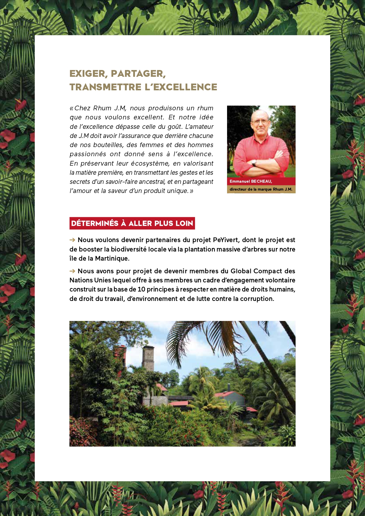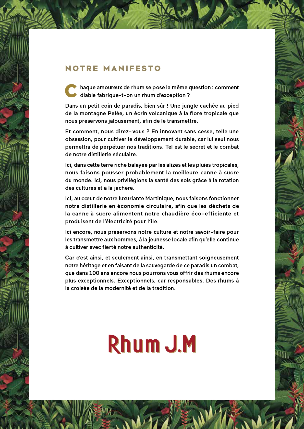 • Une brochure donnant à voir de façon claire, synthétique, visuelle et panoramique l’ensemble des engagements de Rhum J.M.