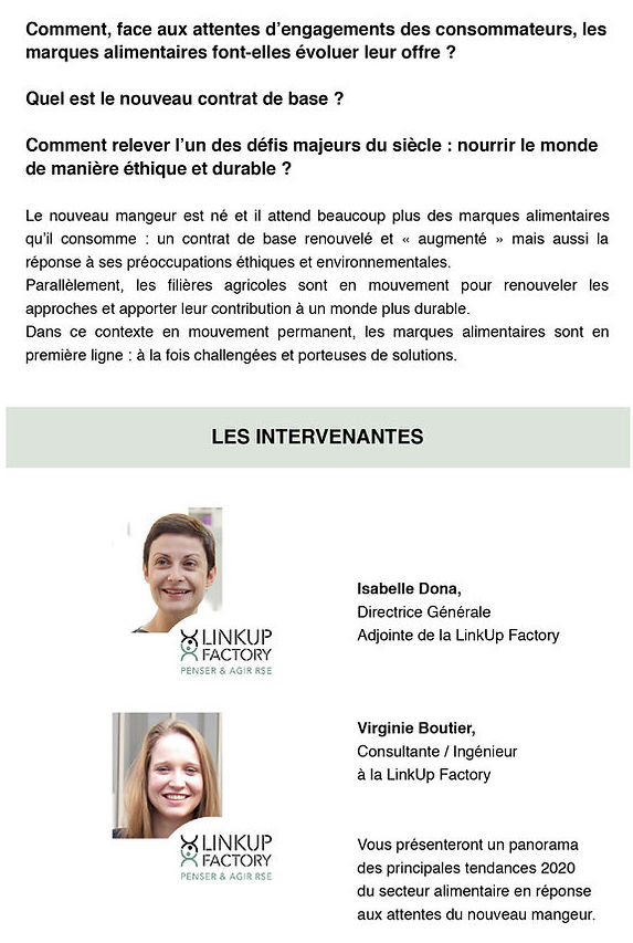 LinkUp Factory met son expertise conseil en RSE, stratégie de marque engagée et en changement de comportement au service des entreprises et des marques qui souhaitent bâtir une démarche d’engagement ambitieuse et réussir leur transition vers un modèle plus durable. Pour en savoir plus sur nos accompagnements, cliquez ici.